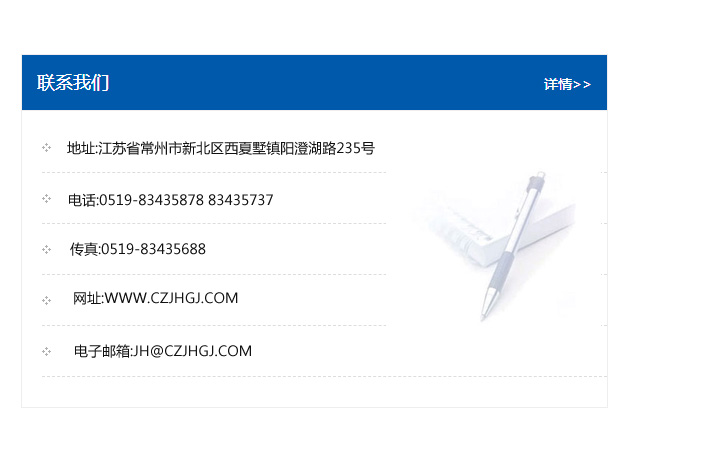 地址:常州市新北區友邦商務大廈1幢16、17層  電話:0519-85101652  傳真:0519-85112595  郵編:213022  網址:www_cz-jiayue_cn.olol99.com  郵箱:xiajifengaa@163.com